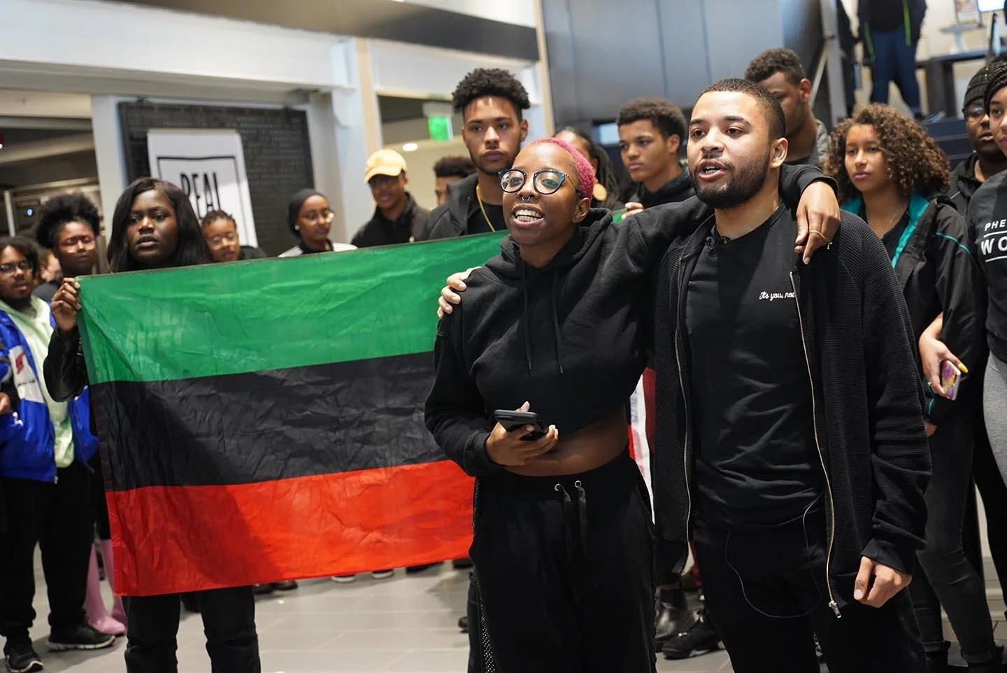 Goucher students participate in protests against the muslim ban at BWI airport terminal. Jan 2017.